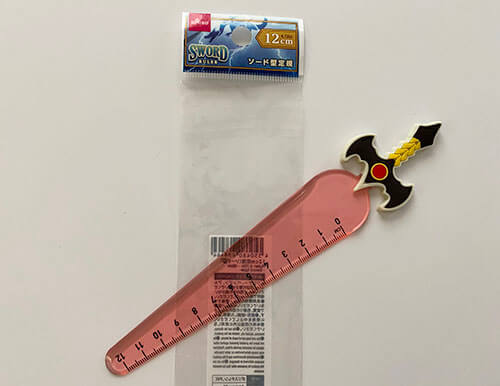 男児が好きそうなソード型デザインの定規も販売されています、持ち手部分は柔らかい素材でできているのでペンケースの中で曲がっても出せば復活してくれます、長さは12cmです