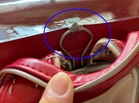 cando ランドセルカバー3.ランドセルの背中部分にある吊カンにループ部分を引っかけて固定します