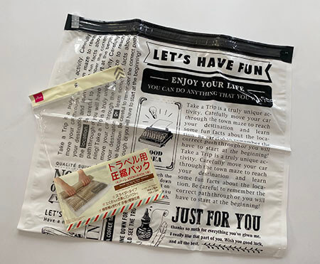 100均「ダイソー」では”トラベル用圧縮袋”などが販売されています