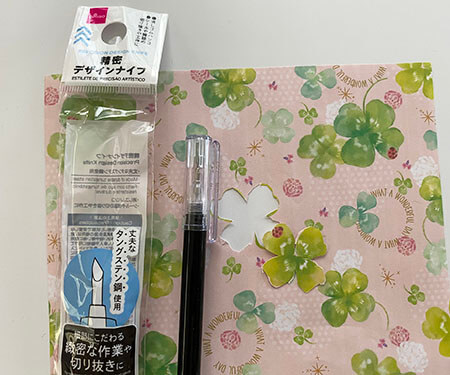 キレイに細かく切り抜きたい時は刃が細くペン型の細かい作業用の精密デザインナイフを使うとペンでなぞるような感覚でカットできます