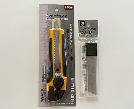 100均「セリア」でも”カッターナイフ”などが販売されています