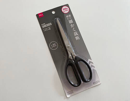 100均「ダイソー」では”シュレッダーハサミ”などが販売されています