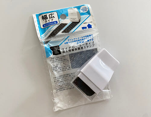 セリア 個人情報保護用スタンプインク一体型ローラータイプ&幅広タイプなので蓋をとって消したい部分にコロコロとスタンプを走らせれば見えなくする事ができます