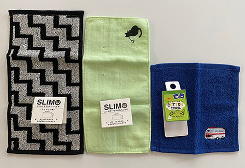 タオルのいい所を取り入れつつサイズダウンしたのが”スリムタオルハンカチ・ハーフハンカチ”ですね
